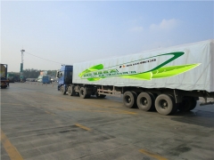 拖挂车辆一般车箱长度在11米以上的大型货车,具有载货多、车厢即高又宽、长途运输、行驶范围广等特点。高端拖挂广告车衣利用白色防水帆布材料,图文喷绘后续加工的制作方式。在车身两侧形成巨大的宣传图案,直视距离超过150米。相对于其他的户外媒体形式,广告车衣的传播方式是主动出现在受众的视野之中,在传播方式上最为"积极、主动"。从人的注意力角度讲,移动的物体总是比较能被注意到,因此,移动的广告车衣同样也更能在众多户外媒体中脱颖而出,得到更多的注意,实现高到达率 。